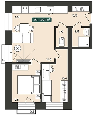 Максимум естественного света и ощущение будто вы живете в собственном загородном доме – вот, что ждет вас в такой просторной планировке.