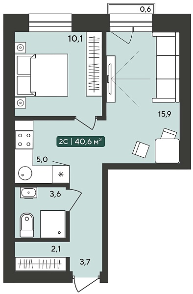 Максимум естественного света и ощущение будто вы живете в собственном загородном доме – вот, что ждет вас в такой просторной планировке.