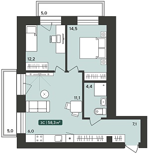 Максимум естественного света и ощущение будто вы живете в собственном загородном доме – вот, что ждет вас в такой просторной планировке.