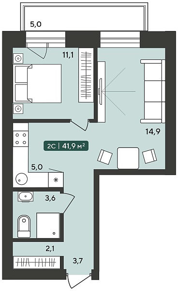 Максимум естественного света и ощущение будто вы живете в собственном загородном доме – вот, что ждет вас в такой просторной планировке.