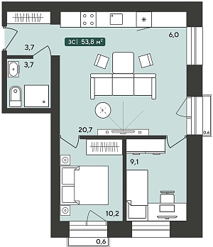 Максимум естественного света и ощущение будто вы живете в собственном загородном доме – вот, что ждет вас в такой просторной планировке.
