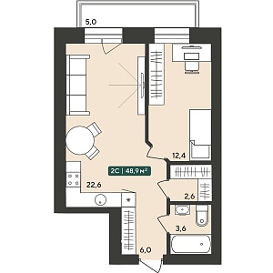 Максимум естественного света и ощущение будто вы живете в собственном загородном доме – вот, что ждет вас в такой просторной планировке.