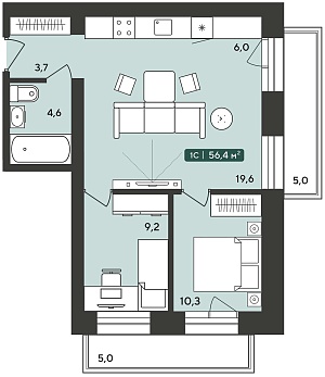 Максимум естественного света и ощущение будто вы живете в собственном загородном доме – вот, что ждет вас в такой просторной планировке.