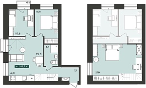 Эти варианты отличает лёгкость зонирования квартиры на общую и приватные зоны. Наверху вы сможете расположить спальни, комнаты отдыха, а внизу — рабочий кабинет, прихожую, гостиную и кухню. Наконец-то для каждого члена семьи будет своё место.