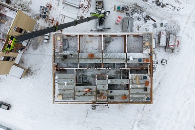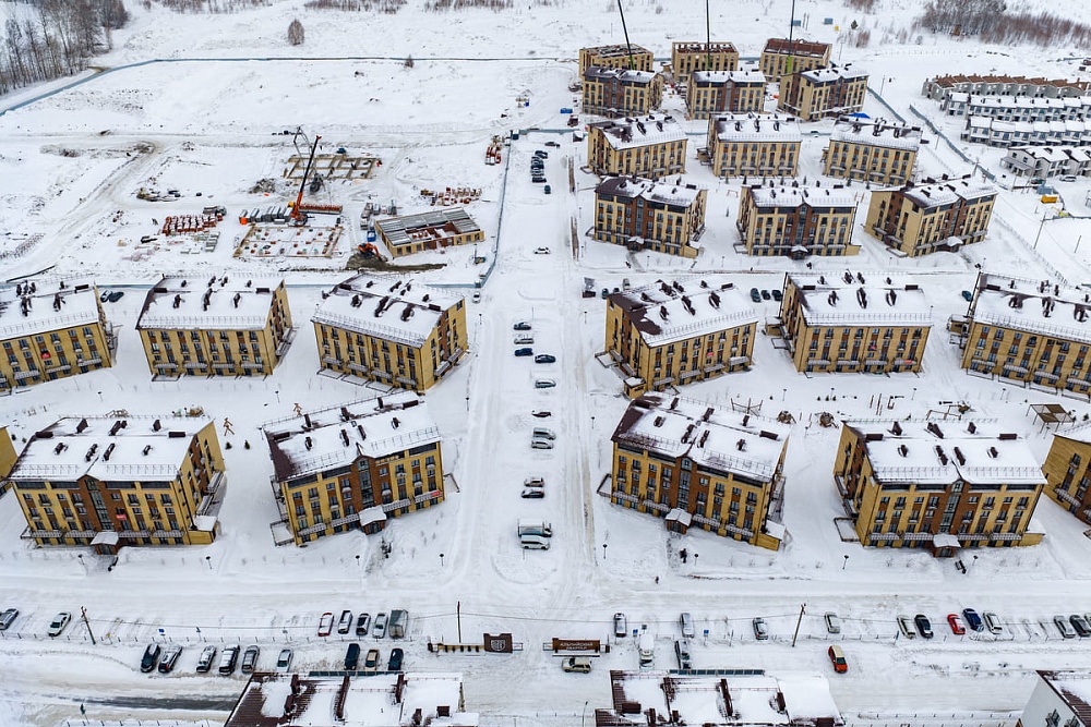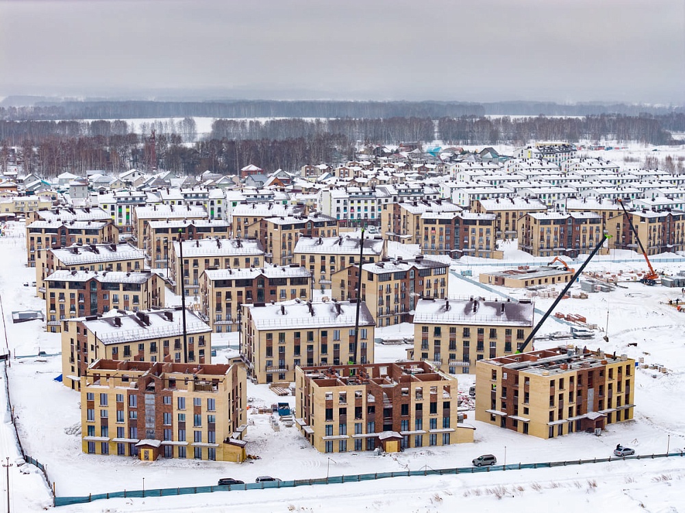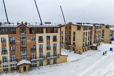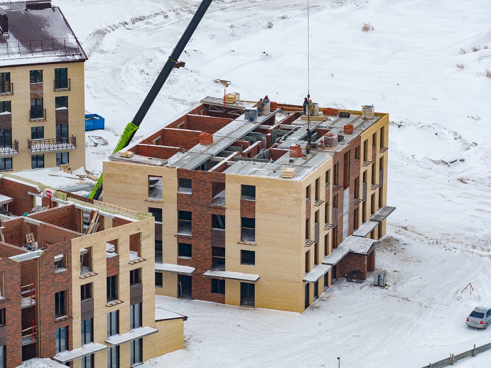 Дома №33, 34 и 35 — завершены штукатурные работы, установлены оконные блоки террас 5-го этажа, полностью выполнено устройство кровли, завершены работы по монтажу внутренних сетей бытовой канализации, водопровода и отопления, ведутся отделочные работы мест общего пользования с первого по четвертый этажи, также ведутся работы по устройству стяжки пола с первого по пятый этажи.